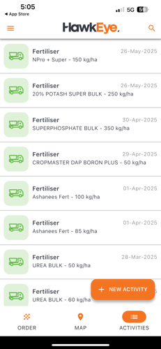 You can also create fertiliser activities by completing your own orders via the order status page. Learn how to complete your own orders here.