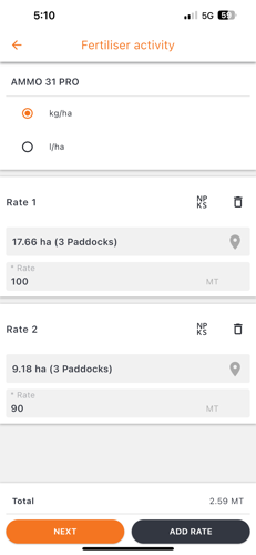 Enter the spread rate. If you have spread at multiple rates select Add Rate to add in additional areas and rates